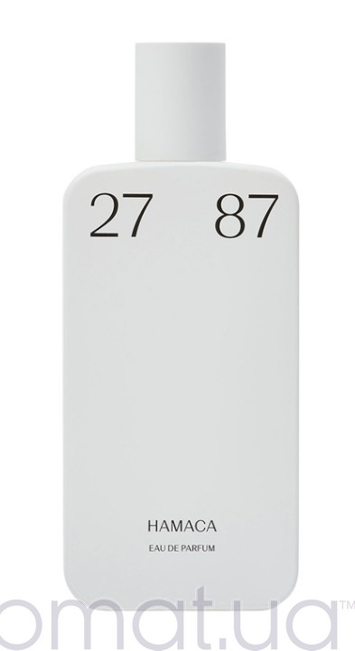 27 87 Perfumes Hamaca — це унісекс-аромат 2017 року від іспанського нішевого бренду 27 87 (Барселона), що входить до їхньої "Calm Line" — лінії для релаксу, mindfulness та "безтурботного" вайбу. Назва "Hamaca" (гамак іспанською) ідеально передає суть: розслаблення в гамаку біля моря, тепле сонце на шкірі, солоний бриз і кремова солодкість від сонцезахисного кокосу. Це теплий, кремовий, морсько-гурманський аромат — ніби день на пляжі: солона шкіра після купання, залишок кокосового сонцезахисного крему, що нагрівся на сонці, і легка ванільно-тонкова солодкість.