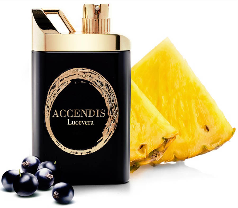 Приголомшлива парфумована вода 2017 Accendis Lucevera, збирає навколо себе поціновувачів і професіоналів з усього світу. Це захоплююча подорож у світ свіжості, шляхетності та чуттєвості, які не знають берегів. Стартовий півтон розвивається на перетині чорної смородини з тонкими краплями бергамоту. Далі ми поринаємо в зелень з її терпким хрустким півтоном, відгалуженнями пачулі та ананасовим мотивом.