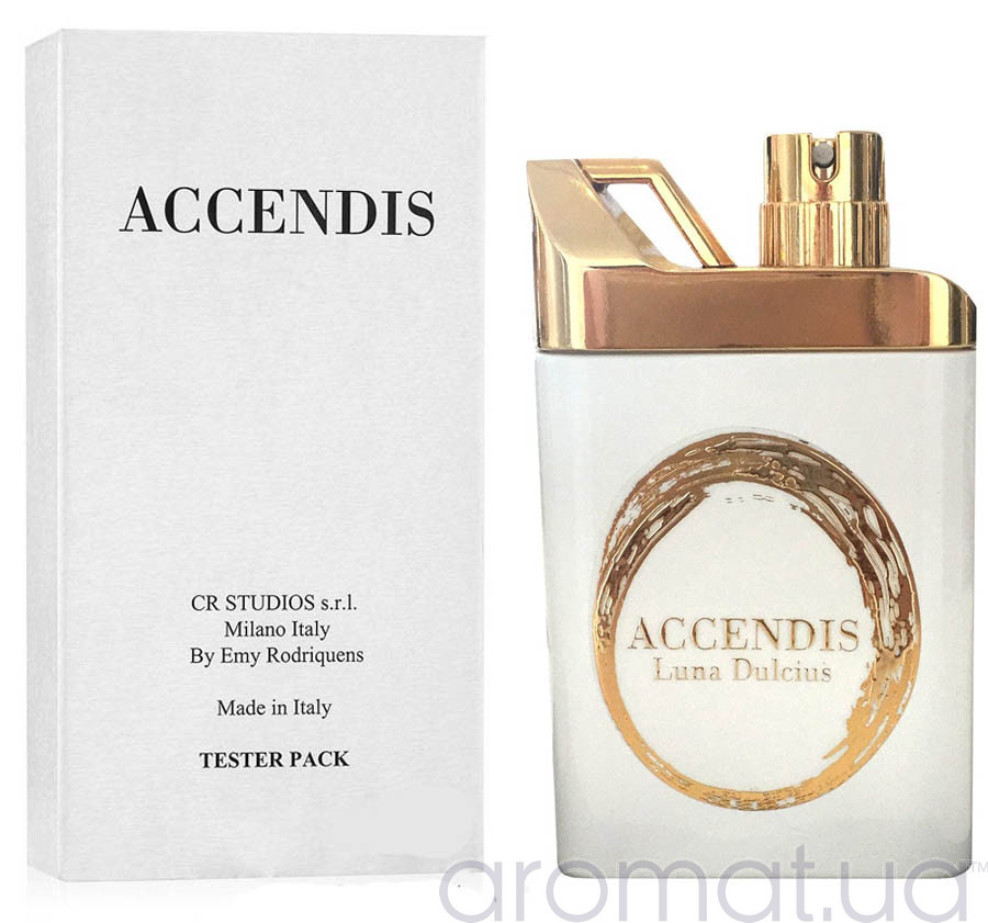 Нова жіноча парфумована вода Accendis Luna Dulcius, це аромат справжньої свободи, нічим не прихованого буйства і справжнього благородства, що не знає кордонів. Він створений у 2018 році, для молодого покоління, яке віддає перевагу його квітковим і фруктовим відтінкам. На верхньому півтоні парфумер поставив солодку хвилю кокосу, вкриту терпкістю червоних фруктів.