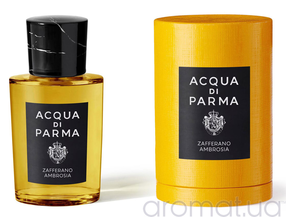 Acqua di Parma Zafferano Ambrosia — новинка 2025 року, аромат, що розкривається як сонячний вибух спеки й ніжності. У старті сяє червоний мандарин — яскравий, соковитий, іскристий, його свіжа цитрусова гра перегукується з витонченістю бергамоту. Імбир додає в цю іскристу композицію пряного жару, створюючи відчуття енергії та життєвої сили. У серці аромату панує шафран — розкішний, палаючий, він звучить як золото на шкірі, додаючи насиченості й благородного тепла. Aromat.ua Йому вторить апельсиновий цвіт — ніжний, сяючий, з медово-білим відтінком, що надає чуттєвої легкості.