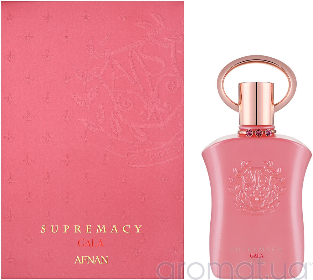 Знайомтесь з Afnan Perfumes Supremacy Gala Femme — парфумом, який втілює жіночність і витонченість. Початкові ноти апельсина, квітки груші та червоних ягід дарують вибух свіжості й соковитості. Аромат вийшов досить давно, але і зараз є популярним. У серці аромату розквітають гарденія, біла жимолість і червоний жасмин, створюючи чарівний квітковий букет.