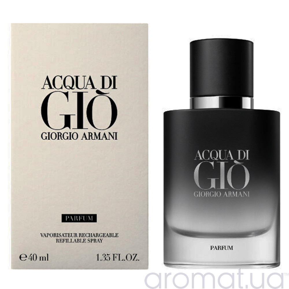 Довгоочікуваний світовий аромат Armani Acqua di Gio Parfum, це подарунок усім чоловікам, які стежать за власним стилем та люблять лінійку парфумерії Armani Acqua di Gio pour Homme. Цього разу до першого враження входить поєднання бергамоту та солоних морських нот. Цього разу флакон має чорний колір, що плавно переходить у прозорий, але форма його залишилася незмінною.