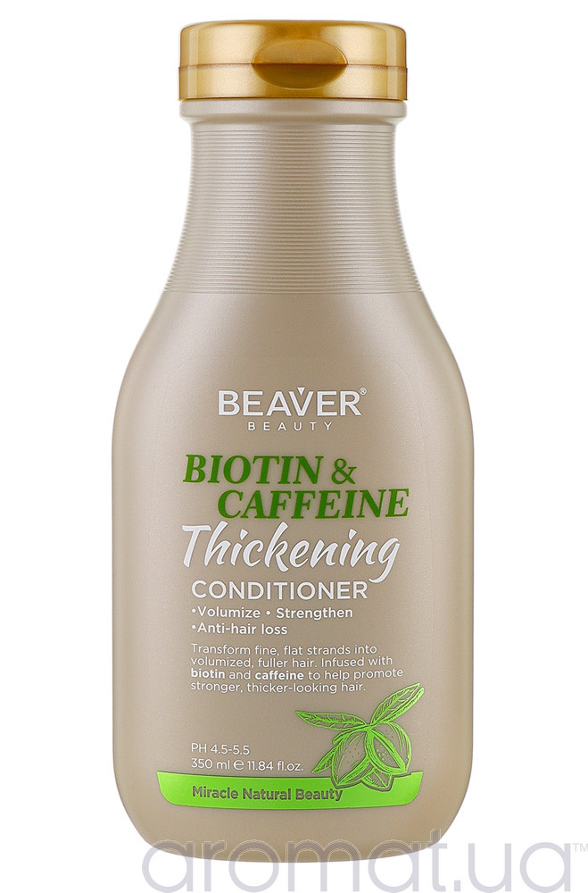 Спеціалізований шампунь Beaver Professional Biotin & Caffeine Thickening Conditioner є професійним рішенням для потовщення ламкого та тонкого волосся, надання йому живої сили та міцності. Продукт містить кофеїн та біотин, які є природними енергетиками для волосся, живлять його і доглядають. Для кращого ефекту використовуйте також кондиціонер.
