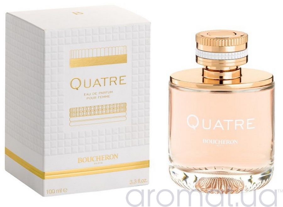 Відкрийте для себе піднесену пишність аромату Boucheron Quatre pour Femme, що став елегантною парою для справжнього красеня під назвою Boucheron Quatre pour Homme. У початковій ноті ми із задоволенням відзначимо квартет цитрусів, створений із класичної лимонної соковитості, апельсинового нектару й елегантної гіркоти грейпфрута.