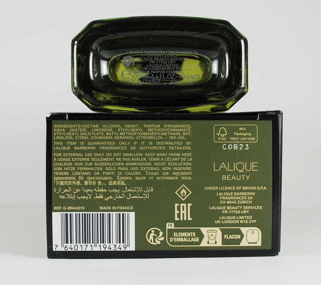 Легендарна Італійська торгова зазначає що продукт є своєрідним змішанням старого і нового стилю, що в результаті дає дещо несподіване. Нота серця розкривається разом із пачулі й гіркими екваторіальними бобами тонка. А під завісою приходить лінія диму ладану й стильної сандалової деревини. Це найкращий продукт, готовий розповісти про ваш унікальний образ життя.