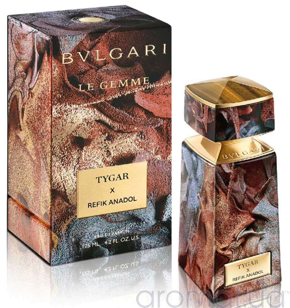 Лімітована новинка Bvlgari Tygar x Refik Anadol, випущений у 2025 році в рамках колекції Le Gemme, — це цитрусовий аромат для чоловіків, створений парфумером Жаком Кавальє-Белльтрудом. Натхненний співпрацею з медіа-художником Рефіком Анадолом, цей парфум поєднує мистецтво та аромат. Aromat.ua Відкривається яскравим грейпфрутом, що заряджає енергією, у серці — пряний імбир і мускусна амбретта, які додають глибини. База з амброксану, пачулі, ветівера та мускусу створює стійкий, землистий шлейф. Цей парфум, доступний у флаконах 125 мл, ідеальний для літа та весни, підкреслюючи сучасну мужність і любов до мистецтва.