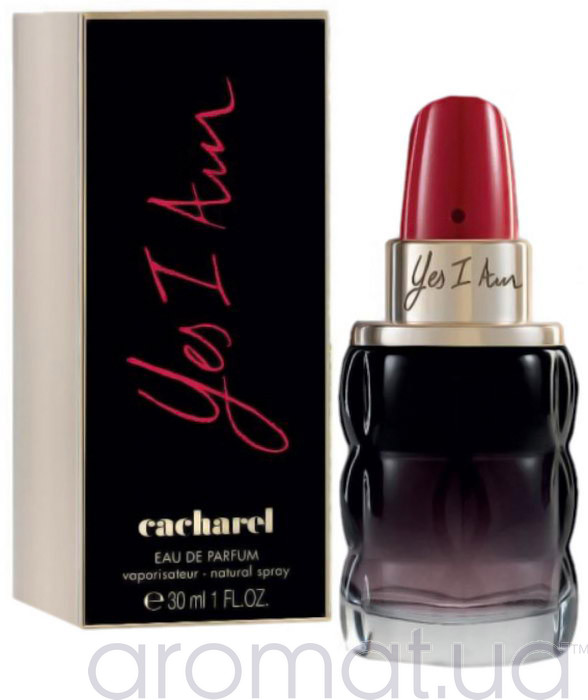 У гламурному флаконі парфумованої води Cacharel Yes I Am, схожому на помаду, сплелася сором'язливість та бажання пристрасті. Верхній мотив переливається дзвінкою малиновою ягодою в компанії з помаранчевим мандарином. Середина піраміди нагадує ретро вечірку, в якій рвучкий гострий імбир сусідить із солодкою патокою жасмину та мотивами гарденії.