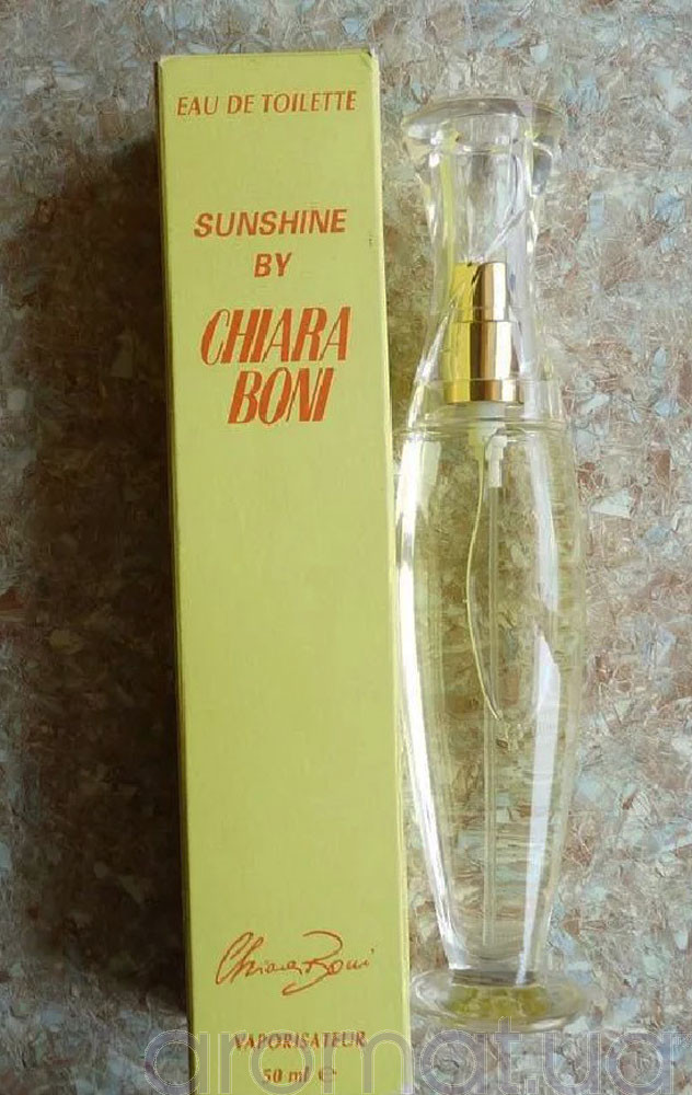 Аромат з далекого 1998 року Chiara Boni Sunshine важко назвати відомим, менше з тим він є популярним серед поціновувачів. Це квіткова та фруктова фантазія, яка просто дихає традиціями старої школі Європейської парфумерії. На стартовій ноті автори поставили перетин соковитого рожевого грейпфруту, змішаного з тональністю білої фрезії та солодкої весняної конвалії.
