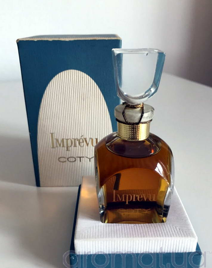 Елегантна жіноча композиція Coty Imprevu, з'явилася в 1964 році, це було дуже давно і на той час ставлення до цієї тематики було зовсім іншим. За настроєм це духи старої школи, яка пішла безповоротно, але залишилася у нашій пам'яті назавжди. Зі стартового акорду відкривається коріандр, уживаний розсипом пишного неролі, небесними альдегідами та безліччю інших компонентів. Серцевий ритм видає шляхетність та спокій ірису в компанії іланг-ілангу, і бордовій красуні троянди з далеких країн. Відкриваючи для себе цей шедевр не можна не здивуватися його характеру та особливому стану, який буквально відчуваєш на власний манер. База робить реверанс у бік шкіри, під якою тліє неймовірний бензоїн із сірою амбровою хвилею. Зараз знайти цей запах дуже складно, але він живе як нагадування про те, що світ сповнений чудес, які відчуєш не відразу.