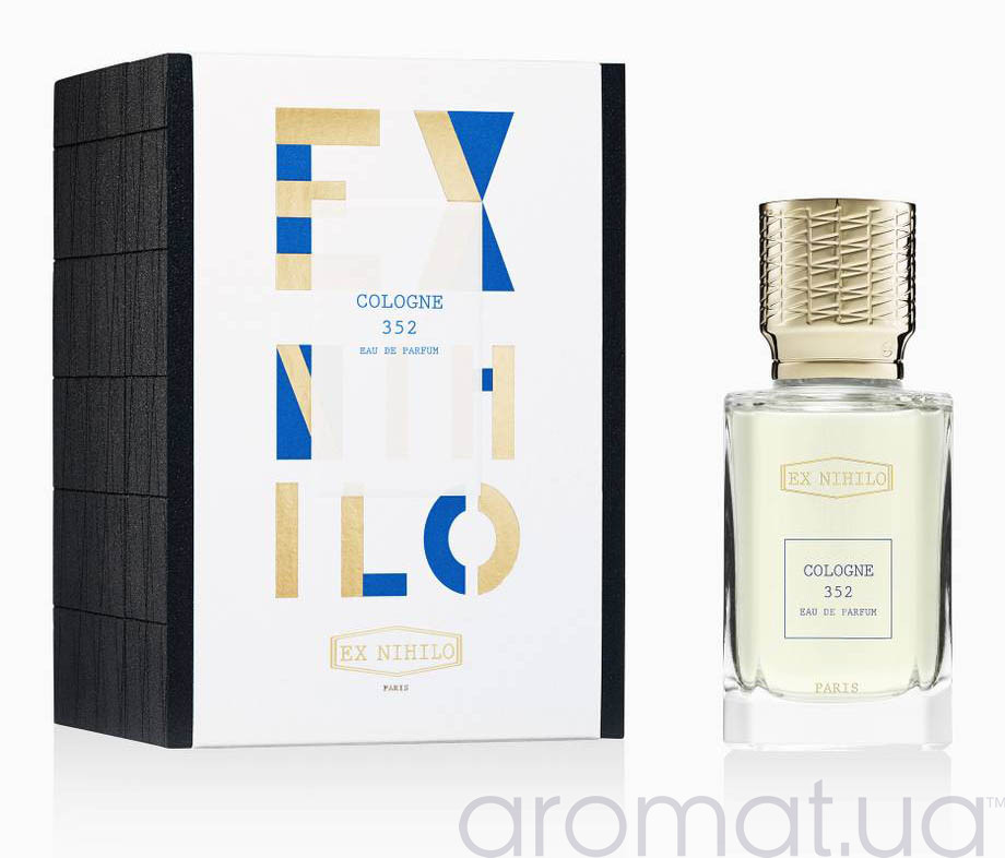 Как всегда загадочное и непревзойденное творение Ex Nihilo Cologne 352, навевает противоречивые чувства и заставляет наслаждаться каждой каплей. Этот драгоценный эликсир пред нами в 2014 году и сейчас имеет множество поклонников по всему свету. На первый план создатели поставили дуэт лимона и горького лесного можжевельника, образующих настоящий всплеск эмоций. Небольшая торговая марка из Франции создаёт парфюмы для особенной аудитории, скромно привыкшей ко всему лучшему. На центре перед нами проходит парад из диковинных колокольчиков ландыша, за которыми тянется белый апельсиновый цвет. Завершает раскрытие мускус, под древесными нотами и мощным кедровым налетом. Любители и профессионалы в один голос отмечают удивительную харизму пирамиды, захватывающей с самого начала знакомства.