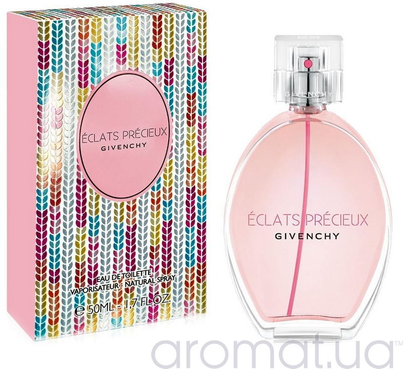 Ніжна фруктово-квіткова класика заграла новими фарбами в ароматі Givenchy Eclats Precieux, багатогранний і різноплановий, він знайде шанувальниць серед жінок різного віку. Верхні ноти задають апетитне звучання, переплітаючись мотивами солодкого тістечка, яскравого мандарину та соковитого ревеню.