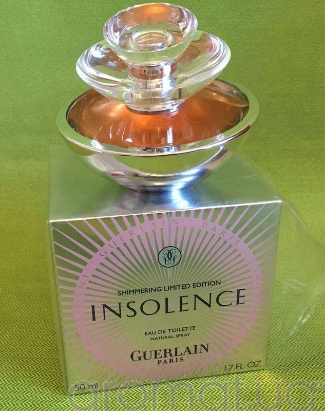 Квітково-фруктова ідилія аромату Guerlain Insolence Shimmering Edition, це лімітований випуск туалетної води, який припав на 2008 рік і досі не втратив актуальності. Творіння із серії Guerlain Insolence Eau de Toilette, завжди збуджує інтерес, кличе із собою і згодом несе красу. Стартова частина присвячена лимонному соку, переплетеному з хвилями зеленого тропічного бергамоту та весняних малинових кущів.