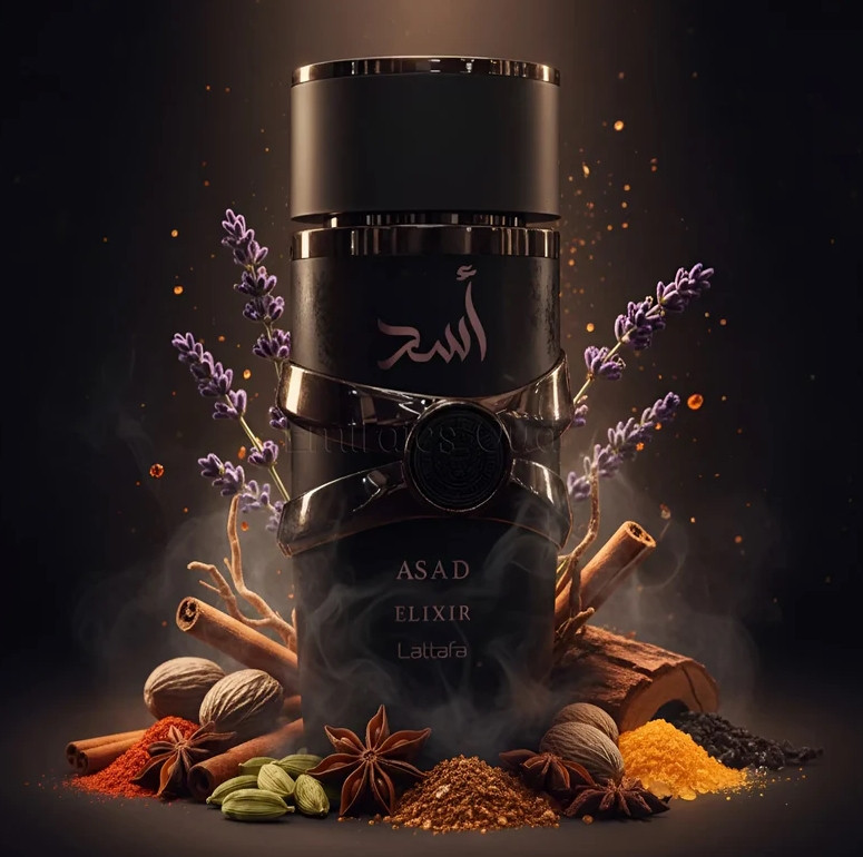 Світло, спеції, глибина — Lattafa Asad Elixir відкривається гарячими спецієвими нотами, що одразу створюють ауру сили, тепла й пристрасті. Лаванда додає прохолодного контрасту, її аромат м’яко згладжує пряність, надаючи композиції гармонії й свіжого подиху. Мускатний горіх і кардамон розкривають серце аромату, наповнюючи його чоловічою енергією, благородною, стриманою, але з відчутною внутрішньою напругою. Aromat.ua У базі сандал приносить шовкову деревну м’якість, мирра — смолисту, духовну глибину, а пачулі завершує аромат землею й спокоєм, закріплюючи його теплий характер. Asad Elixir — це аромат впевненості й сили, що не потребує крику; він пахне вогнем, який тліє всередині, і тишею, у якій ховається справжня влада.