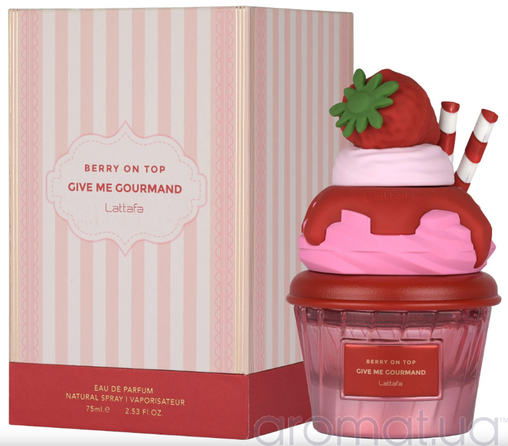 Lattafa Give Me Gourmand Berry On Top — новинка 2025 року, аромат, що відкривається яскравим вибухом полуниці — соковитої, стиглої, з легкою кислинкою, немов щойно зірваної з куща. Її ніжність відразу огортається вершками: кремова м’якість згладжує ягідну свіжість і додає аромату апетитної чуттєвості. Полуничний джем вступає густим, тягучим акордом — солодким, насиченим, з відтінком карамелізованого цукру, що створює ефект десерту, від якого неможливо відмовитися. Кристали цукру іскряться в шлейфі, даруючи ігристість і легкий хрускіт, немов у солодкому поцілунку. Aromat.ua Білі квіти у фіналі додають прозорості й повітряності, створюючи баланс між гурманською насолодою та ніжністю. У цілому це аромат-задоволення: солодкий, обволікаючий, грайливий і чуттєвий водночас, наче десерт, що тане на губах і залишає пам’ять про насолоду.