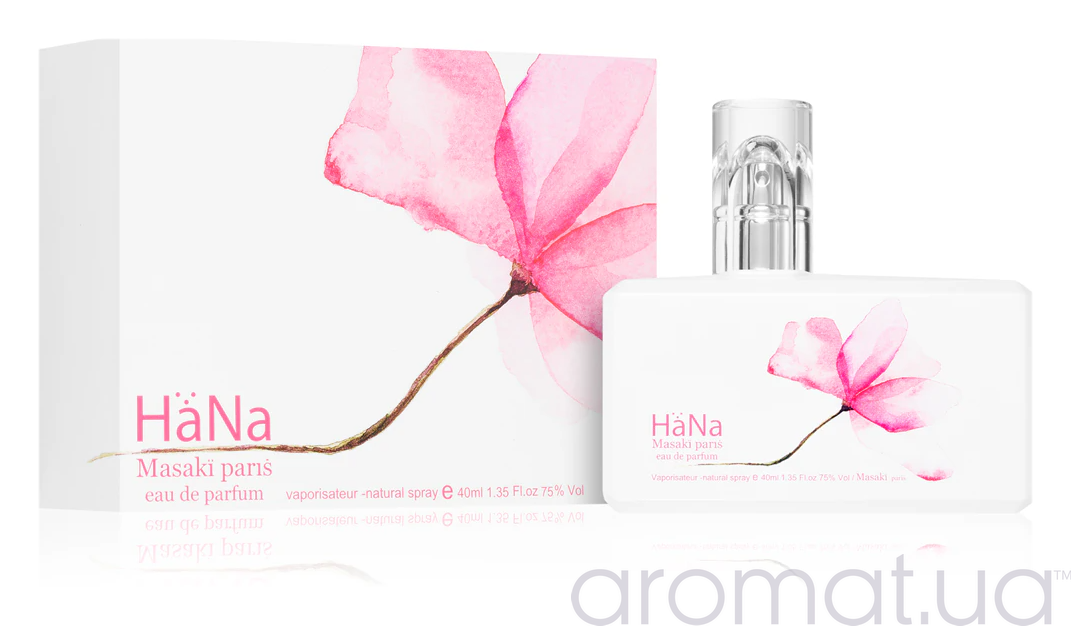 Парфум, натхненний японською естетикою Masaki Matsushima HaNa символізує швидкоплинність, досконалість та молодість. У верхніх нотах аромату поєднуються освіжаючі акорди бергамоту, груші, личі та зеленого чаю, що створюють відчуття легкості та бадьорості. Серце композиції розцвітає ніжними квітковими відтінками лілії, троянди та гліцинії, доповненими солодкуватим акордом кавуна, що надає аромату глибину та елегантність.
