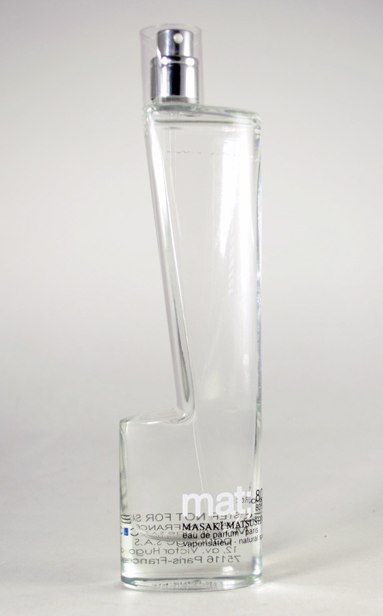 Парфумована вода для жінок Masaki Matsushima Mat, не належить до розряду нових, оскільки вийшла в 2005 році, але на даний момент вона залишається затребуваною та неповторною. Незважаючи на велику кількість компонентів цей парфум не перебиває себе, а звучить плавно і ненав'язливо. На стартовій тіні перед нами розквітає бамбукова яскравість, компанію яке складає гірка ягода ялівцю та ніжний стиглий кавун.