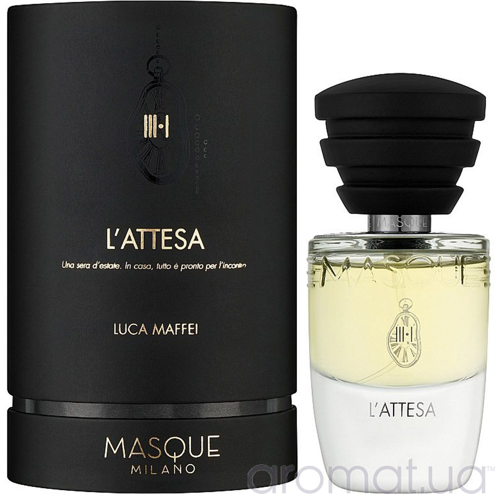 Парфумована вода селективного рівня Masque Milano L'Attesa приносить задоволення і розкривається на шкірі непомітною хмаринкою. Автори чудово подали нам даний продукт, тому він є популярним з 2016 року. Перше враження лишає по собі ігристе холодне шампанське й зелений бергамот з тонким неролі. Парфум має тонкий та ласкавий характер, цікаві сторони, тому підійде чоловікам й жінкам різного темпераменту.