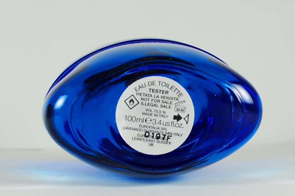 Класичний пузатий флакон, цього разу, прикрашений ніжно-блакитним кольором, що символізує настрій композиції. Середина надає гіркуватість і чуттєвість гірської лаванди.
