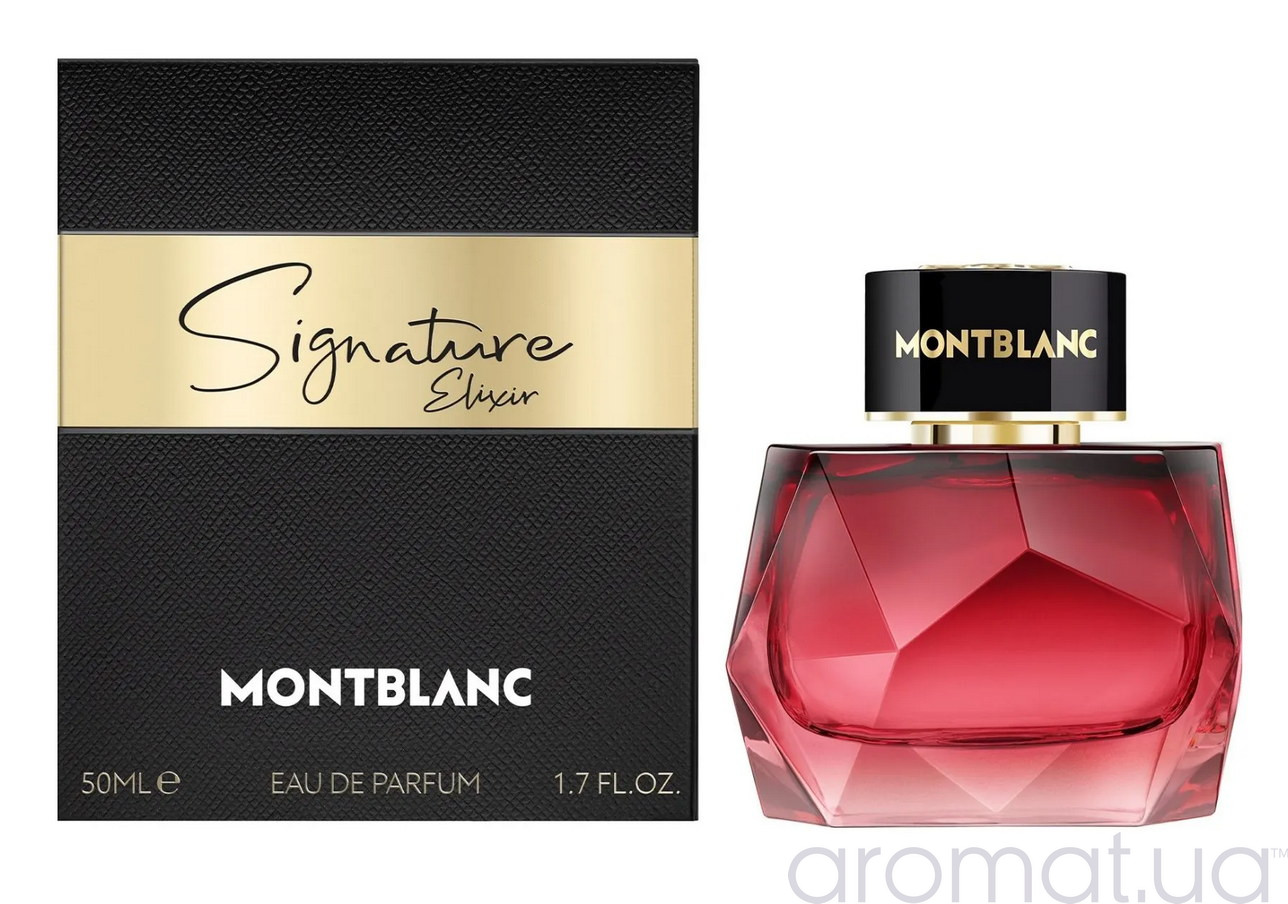 Жіночий аромат Montblanc Signature Elixir випущений у 2025 році, з сімейства східних квіткових, що продовжує спадщину Montblanc Signature 2020 року. Створений парфумером Меаб МакКуртін, він уособлює розкіш і жіночність. Композиція відкривається соковитим мандарином і грушею Вільямс, приправленими рожевим перцем, що додає іскристої свіжості.