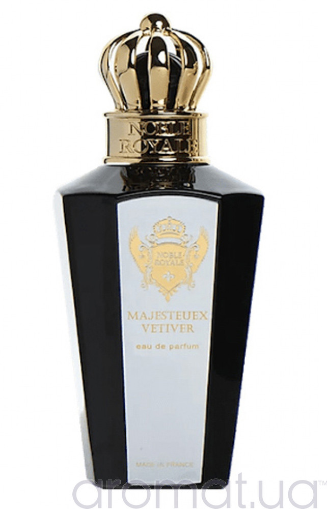 Відчуйте силу і розкіш нового парфуму Noble Royale Majestueux Vetiver. Аромат відкривається на шкірі насиченим поєднанням зеленого ветивера, стрункого кипариса та теплого рожевого перцю, з додаванням цитрусового грейпфрута і кардамону. Серце парфуму розкриває в собі глибокі нотки польової шавлії і яскравої лаванди, доповнені теплим східним олібанумом та пряною аравійською корицею.