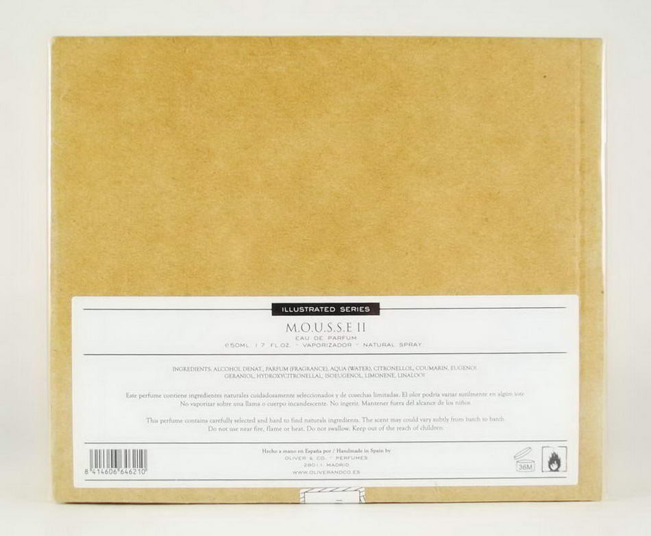 Чудовий та дуже різноплановий аромат Oliver & Co. M.O.U.S.S.E II, став справжнім хітом 2012 року, і через сім років після свого виходу залишається таким. Його компоненти це цілісна мелодія, яка звучить на шкірі м'якою треллю, зливаючись з вашим настроєм. Стартова нота одночасно холодна і ніжна, вона переносить нас у компанію дзвінкої м'яти, наповненої гілками кардамону та запашної сірої амбри з лаймом.
