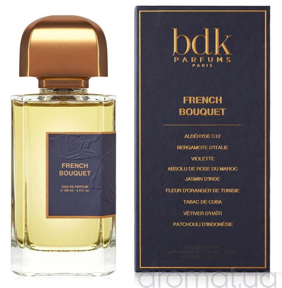 Красива та досить складна парфумерна робота Parfums BDK French Bouquet, це нішевий шедевр, створений у 2020 році. Тут є місце бігатій фантазії та природному орнаменту, створеному руками майстрів.Всі компоненти піраміди чудово розкриваються на шкірі і створюють справжній шедевр. Старт, це духмяні альдегіди, також благородний коріандр, та гіркий зелений бергамот.