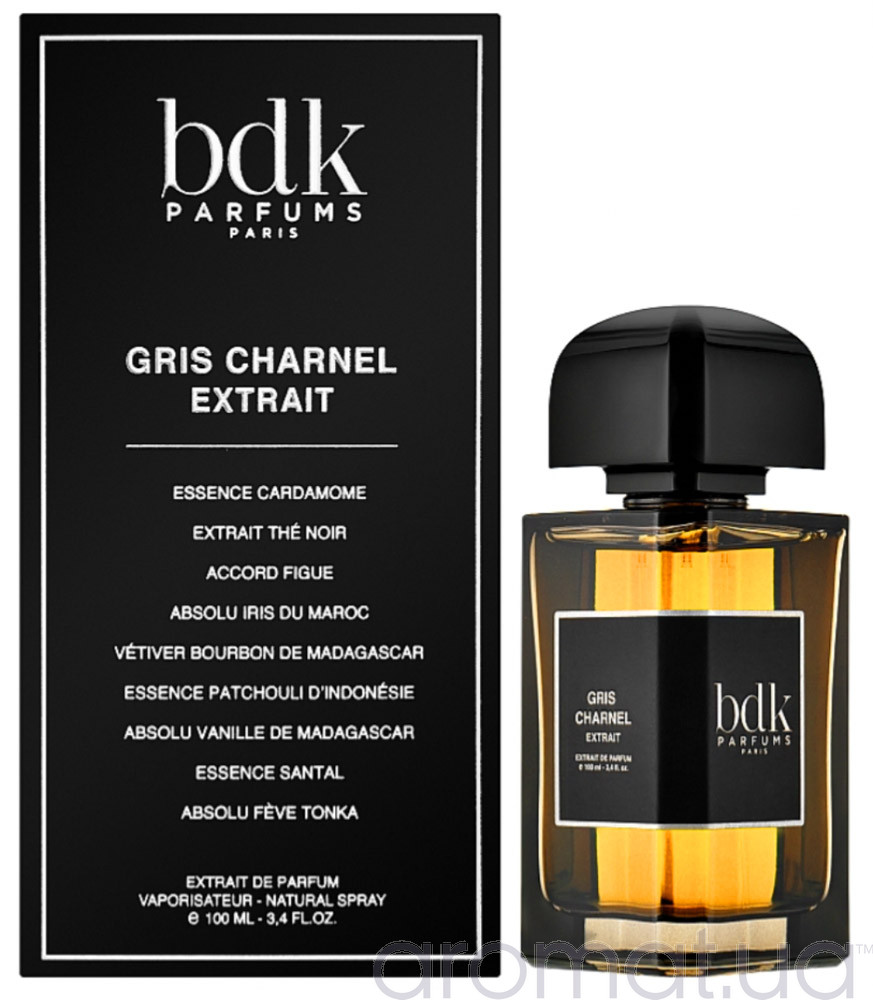 Аромат для вашої особливої насолоди Parfums BDK Gris Charnel Extrait, це стильна та ніжна парфумована вода, на характер якої вплинули східні мотиви. Стартова нота приносить з собою екзотичний кардамон, також гіркувате фігове листя й терпкий чорний чай. Флакон є традиційно простим, цього разу його прикрашено чорними барвами, що натякає на його серйозність й непересічну особливість.