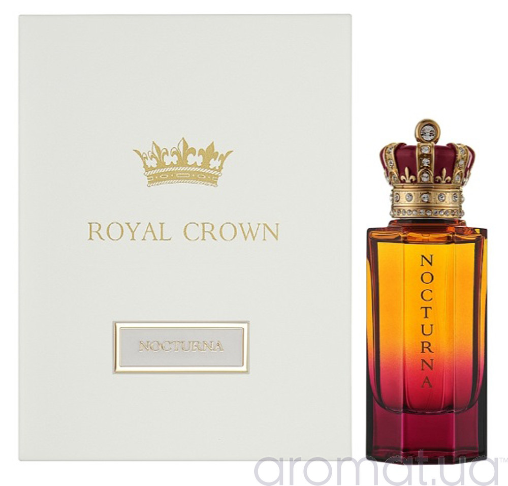 Король ночі — Royal Crown Nocturna — аромат, що вловлює дух темряви, що тане в шарах світла: він відкривається соковитими фруктами — медовим дынним диханням, персиковою солодкістю й спокусливою лічи, мов нічна роса на пелюстках. Потім серце композиції розквітає як таємний сад нічної магії — магнолія, півонія та сандал створюють квіткову м’якість із деревним пульсом, що нагадує дотик шовку й шепіт лісу. А в основі — амброва глибина, ваніль Мадагаскару і повторена нота півонії, як спогад, що лишається на одязі. Це ексклюзивний букет, де фрукти та квіти переходять у теплу, тягучу ванільну хмару з амбровим серцем, яка запам'ятається надовго. Nocturna — це ніби ніч, упакована в аромат; тихо, глибоко, але з шлейфом, що манить, інтригує і залишає в пам’яті світло — навіть коли темрява вже перемогла.