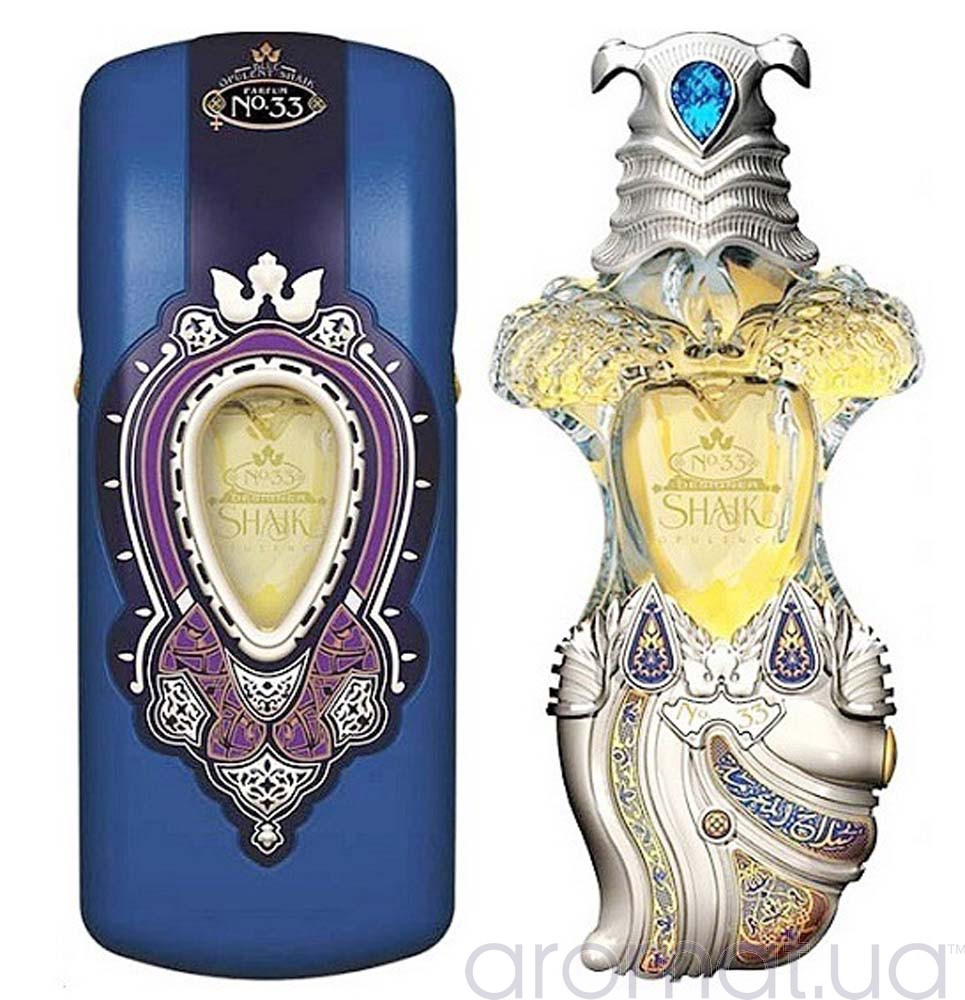 Парфум для особливих моментів життя Shaik Opulent Shaik Classic No 33, це приклад східної чуттєвості, яка знайшла застосування у повсякденному Європейському прагматизмі. Перше враження від парфуму приносить із собою бергамот та пристрасний зелений коріандр, зібрані в єдине ціле. На особливу увагу заслуговує флакон, який сам по собі є ювелірною роботою.
