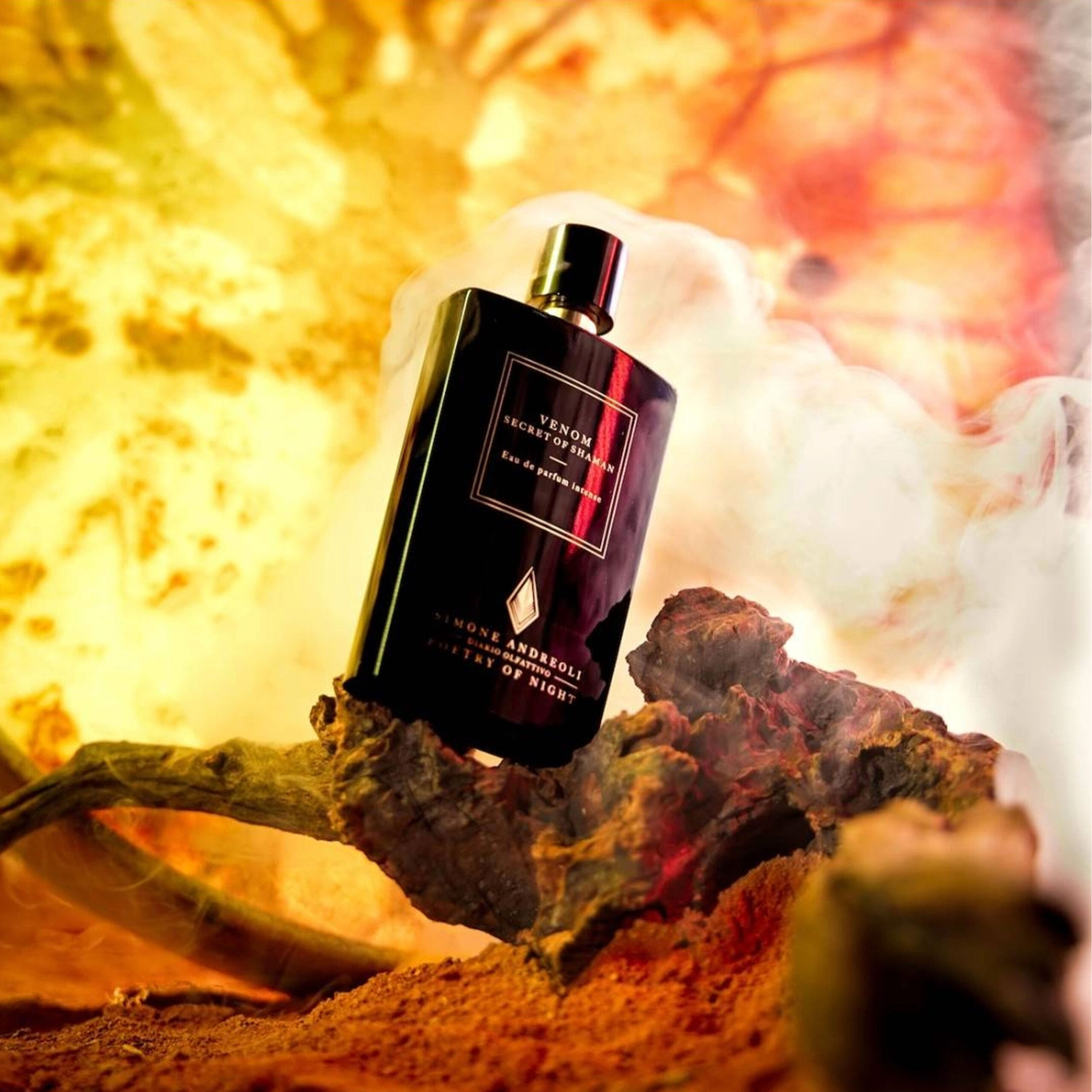 Неперевершений Simone Andreoli Venom Secret Of Shaman — це унісекс-аромат, що запрошує у містичну подорож, натхненну стародавніми шаманськими ритуалами майя та церемоніями з використанням Bufo Alvarius. Цей парфюм, створений італійським парфумером Сімоне Андреолі та випущений у 2024 році, належить до сімейства пряно-деревних ароматів із шкіряними акцентами, втілюючи дух трансцендентності та духовного відродження. Верхні ноти відкриваються яскравим і теплим звучанням шафрану, солодких фініків та сухофруктів, приправлених гострим чорним перцем. Цей початок створює відчуття живої, психоделічної енергії, ніби подих джунглів, що пробуджує почуття. Ноти серця розкривають глибокий і гіпнотичний характер тютюну, темних дерев і священних смол. Ця комбінація переносить у таємничий надприродний світ, де панує первозданна сила природи та духовності, викликаючи відчуття внутрішньої трансформації. Базові ноти завершують композицію багатством шкіри, теплою ваніллю, пачулі та ніжним геліхризумом (безсмертником). Ці акорди створюють потужний, але витончений шлейф, що залишає за собою довготривалий відбиток, сповнений загадковості та чуттєвості.
