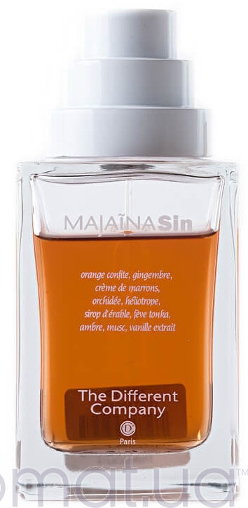 The Different Company Majaina Sin — це ароматичний десерт для душі, створений парфумером Емілі Копперман у 2017 році. Він відкривається вибухом цукрованого бігарда, бергамоту, неролі, апельсинового цвіту та імбиру з Мадагаскару. Цей початок нагадує сонячний ранок у середземноморському саду. У серці композиції розквітають геліотроп, орхідея, крем з каштанів, мадагаскарська кориця та кленовий сироп, створюючи теплий і затишний букет.