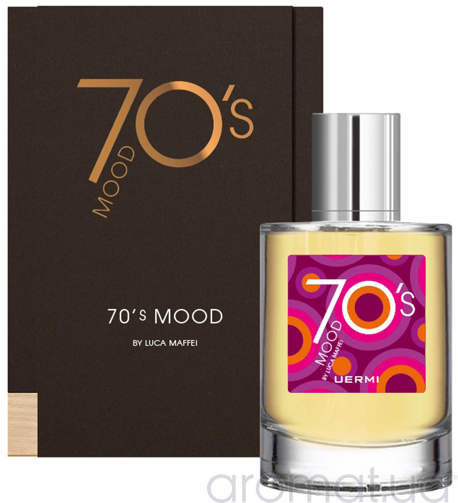 Аромат UERMI 70's Mood — сама іронія, свято і трохи небезпека в одному флаконі. Він — як вибух теплих спогадів з ароматом героїні тієї епохи: починає з іскристих верхніх нот рожевого перцю, кардамону й бергамоту, підпалених чорною шоколадною квіткою – якомога більше 70‑х, але ніби перекладено через гумор і гумус сучасного дня. Серце — це глибина і тепло одночасно: пачулі, окутаний cashmeran (той самий модний деревний шовк), і янтарні деревні акорди, що шовковисто обволікають шкіру. У базі — вона, ця змазана деревна солодкість: натуральна ваніль, ладан (лабданум), бензоїн — все, аби аромат не просто звучав, а залишив після себе слід, що чіпляє, як хитра спокуса. Luca Maffei – непомітний мафіозі парфумерії, вклав у цей аромат свій сарказм, іронію та контекст — як він сам сказав, це чуттєвий hommage до 70-х: «опулентний та афродизіачний», «іронічний, сатурнічно-інтенсивний»