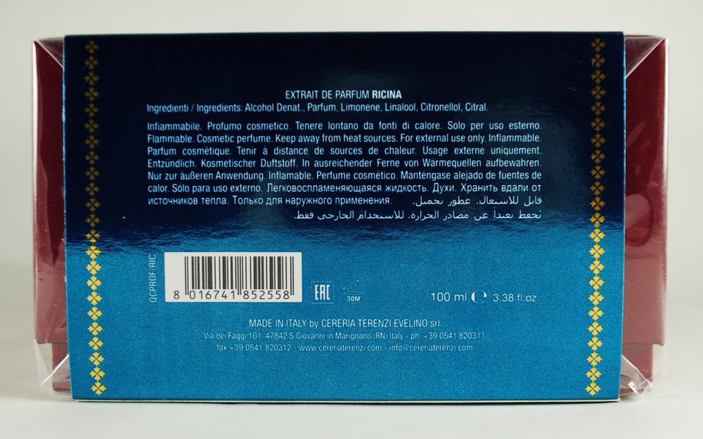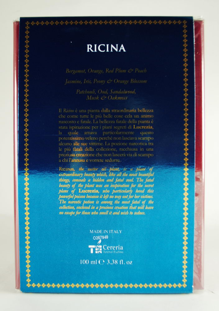 Красива зваблива і м'яка парфумована вода V Canto Ricina, зовсім недавно вийшла з майстерні Паоло Терензі, але незабаром вона розійдеться світом і потрапить на всі парфумерні дегустації старого світу. Як і всі твори легендарного італійця, новинка приголомшує з першого дотику, хоча у складі немає нічого дивного.